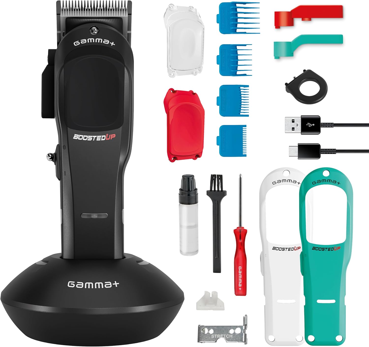 Gamma+ Boosted UP è il tagliacapelli professionale per capelli e barba pensato per i professionisti del settore e per l’uso domestico. Dotato di lama Fade 45mm DLC Black Diamond Carbon con lama mobile ad alta scorrevolezza e 4 pettini di diverse misure per una rasatura perfetta.
